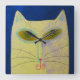 Carrée Horloge Abstraite d'art de Chat Jaune
