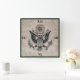 Cette gravure d'armoiries américaine d'aspect vintage est parfaite pour les événements patriotiques ou les personnes. Célébrez l'héritage et la grandeur américains avec ce dessin à l'encre sur du vieux papier basé sur une gravure des armoiries des États-Unis, une partie du Grand Sceau des États-Unis. Ce symbole national américain mettant en vedette un aigle à tête blanche américain tenant treize flèches et une branche d'olive avec treize feuilles dans ses serres et un bouclier sur sa poitrine avec treize étoiles au-dessus de sa tête.
