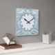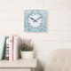 Carrée Horloge Art Déco Bleu Mint - Lignes Abstraites Élé