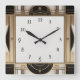 Carrée Horloge Art déco carré en noir blanc et or