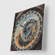 photographie en noir bleu et orange. photographie en couleur détaillée d'un repère historique, médiéval, une vieille horloge astronomique à prague en europe avec bleu, orange et marron, signes astrologiques et chiffres romains. photographie en noir blues et oranges.