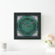 Horloge baroque encadrée de bois orné d'ornements agrémenté d'oiseaux, de fleurs et de plantes. L'horloge est au centre du cadre, a un look métallique et est très détaillé et décoratif et fait en vert avec des chiffres bleus et une touche de violet.