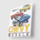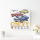 Horloge carré Chevy Muscle illustrée par Shannon Watts. Comprend une Chevrolet Corvette Stingray 1967, une Chevrolet Camaro 1969 et une Chevrolet Chevelle 1970.