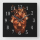 Carrée Horloge Carré du crâne flamboyant orange