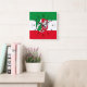 Horloge murale avec variante du drapeau de Rhénanie du Nord Westphalie (Rhénanie-du-Nord-Westphalie), conception avec tricolore horizontal de vert, blanc et rouge; avec un bouclier avec illustration du fleuve et cheval au centre