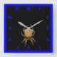 Une photo de clôture d'une araignée de tisserand orb abattue la nuit sur son web. C'est clair et coloré sur un mur Carré Horloge.