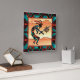 C'est une horloge murale Kokopelli Sud-Ouest unique "One of a Kind"! Il présente un Kokopelli en Turquoise, Orange et Noir Jouant la Flûte et Dansant sous le soleil dans le désert! Design D'Art Original Par L'Artiste Kerry Miller.