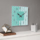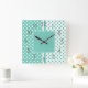 Carrée Horloge Carré Pois Turquoise et blanche
