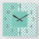 Horloge carré à pointes Turquoise et Blanc Polka avec chiffres Silvertone