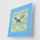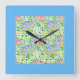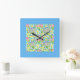Carrée Horloge Carré Primroses, Bordure Turquoise