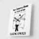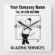 Horloge murale des Services de laquage avec votre choix de nom et de numéro de société. Le design montre un homme portant une grande vitre. Horloge pour vitreurs, verriers, vitrines ou fabricants de tôle.