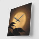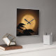 C'est l'automne, et une lune jaune doré et lumineuse s'est élevée derrière les silhouettes noires de feuilles soufflant dans la brise sur cette horloge photographique d'art dramatique. L'arrière - plan est illuminée dans les tons orange, or et marron pour créer un motif abstrait dans un motif asiatique.