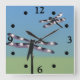 Horloge mignonne de libellule avec l'arrière - plan vert et bleu.