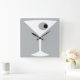 Cette horloge de mur de verre Noir de Martini de film comporte un arrière - plan de gris de charbon de bois et l'image d'une silhouette blanche d'un verre de martini. À l'intérieur du verre est une olive grise glorieuse avec un piment noir. C'est une horloge murale d'amusement pour chacun qui souhaite qu'ils aient été un caractère dans un film classique. Secoué non remué, svp !