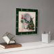 Horloge de vacances avec une scène de fenêtre de Noël vintage de l'arbre de Noël et des lumières brillant la nuit par une belle fenêtre, bordure verte et chiffres mis en évidence.