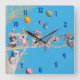 Carrée Horloge de nurserie pour enfants en aquarelle koal