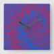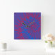 Carrée Horloge de teinture à crampons bleu et rouge