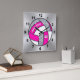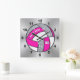Carrée Horloge De Volley Personnalisée, Rose, Blanc, Arge