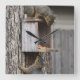 Une horloge comportant une photo de deux écureuils.