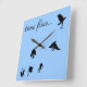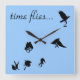 Sept corneilles artisanales en silhouette noire audacieuse s'envolent avec les chiffres sur cette horloge fantaisiste "Time Flies".