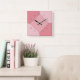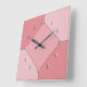 La face de l'horloge est divisée en quartiers avec foncé et lumière dans les coins opposés. Au centre se trouve une forme en diamant qui chevauche les divisions du quart avec des coins placés aux 12, 3, 6 et 9 positions de l'horloge. Les chiffres sont blancs avec une ombre portée. Choisissez votre propre couleur arrière - plan, qui sera les coins les plus foncés et les autres divisions seront des tons plus clairs de cette couleur (par défaut rose foncé).