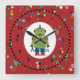 Carrée Horloge du mur de robots verts du garçon