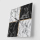 Carrée Horloge en marbre noir blanc avec texte personnali