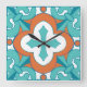 Carrée Horloge en mosaïque Talavera - Orange & Turquoise