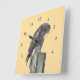 Faucon pèlerin contemplant le passage du temps assis sur un poteau. Les chiffres blancs ont une ombre portée. Arrière - plan en crème-orange peut être customisé.