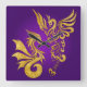 Carrée Horloge Feng Shui Golden Phoenix & Dragon - violet