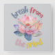 Une horloge présentant une fleur de lotus à l'aquarelle, avec la phrase "Échapper à la routine" centrée autour de l'image. La fleur de lotus, connue pour sa beauté et sa résilience, symbolise la pureté, l'illumination et l'éveil spirituel, suggérant une évasion paisible des stress quotidiens.