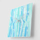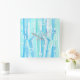 Arrière - plan d'arbres abstraits en turquoise, turquoise, bleu et blanc, avec une forme géométrique identique en forme de diamant/pentagone devant, est imprimé sur des horloges murales contemporaines personnalisées. Les chiffres sont blancs, et il semble super avec des aiguilles d'horloge gris. Merci pour faire du shopping à CherylsArt sur Zazzle.