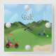 Comporte un arrière - plan de terrain de golf avec un dessableur et le drapeau de golf, un chariot de golf rouge, un chariot de golf bleu tous les deux avec des sacs de golf. Le texte stylisé est golf. Les numéros de pointage sont des boules de golf et peuvent être supprimés si vous souhaitez. Perfectionnez pour n'importe quelle pièce dans votre maison, bureau ou salon. Cette conception a été créée utilisant l'artwork© original www.delightful-doodles.com
