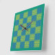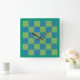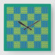 Carrée Horloge murale, émeraude et Motif à écailles bleue