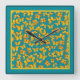 Carrée Horloge murale, Papillons dorés sur Turquoise