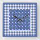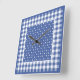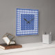 Une horloge murale carrée très élégante, dans le bleu foncé à la mode (du Monaco) avec le pois et le guingan blancs de contrôle.