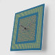 Une belle horloge murale carré, avec un style d'art folklorique, tout-en-motif de petits coeurs rouges et verts sur un arrière - plan turquoise foncé et un chèque vert et turquoise en vichy motif.