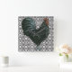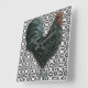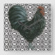 Superbe coq noir sur un arrière - plan design noir et blanc. Idéal pour toute cuisine de style !