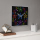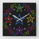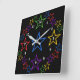 Les contours de l'étoile en couleurs 3D (rouge, vert, bleu, violet, jaune). Cinq petites étoiles dans toutes les couleurs de chaque coin. Grande étoile bleue au centre, rouge, jaune, violet et vert aux positions 9, 3, 6 et 12. L'Arrière - plan est noir.