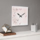 Horloge murale carré rose pâle avec papillons et tourbillons de fleurs