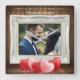 Célébrez votre amour avec cette horloge murale personnalisée et magnifiquement conçue ! Avec un fond en panneau de bois classique, un cadre blanc orné, des graphiques de cœur romantiques et des noms et date personnalisés, c'est le souvenir idéal pour votre 1er anniversaire de mariage. Personnalisez avec votre photo préférée, vos noms et date pour un cadeau unique qui sera chéri pour toujours. Idéal pour les couples, les mariages ou les anniversaires.
