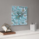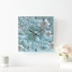 Carrée Horloge turquoise blanche florale