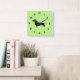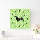 Carrée Horloge verte du mur de Dachshund