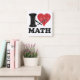 Faites savoir à tout le monde combien vous aimez les mathématiques avec cette horloge murale mathématique qui dit, "I Heart (Love) Math" dans une police noire audacieuse avec un coeur. Le design est déprimé pour un look vintage.