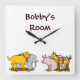 Une horloge murale personnalisée avec l'art vintage d'un chien jouet, cheval, cochon et éléphant sur roues, restauré à partir du livre d'histoire d'un enfant. Cliquez sur Customiser pour modifier les polices, les couleurs arrière - plans et plus encore.