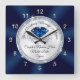 Carrée Marine Bleue, Argent Mariage personnalisé Horloge