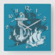 Carrée Navire pirate & Ancre Blanc Silhouette Horloge mur