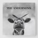 Carrée Peeking Vache Nuages Noir Blanc Carré Mur Horloge