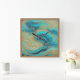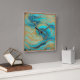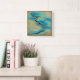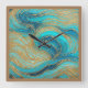 Carrée Peinture Abstraite pour Aqua Blues Mur Or Horloge