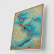 Horloge murale avec peinture générée par l'IA versez avec des bleus, aqua, des tourbillons blancs et noirs et des vagues de couleur.